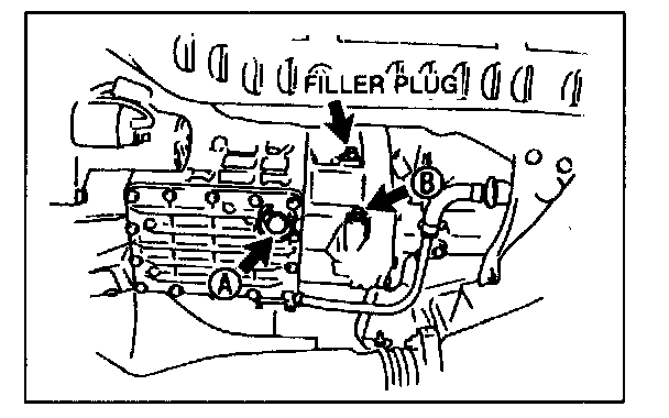 2. Remove plug A (with washer) and B, and drain the oil into a suitable container.