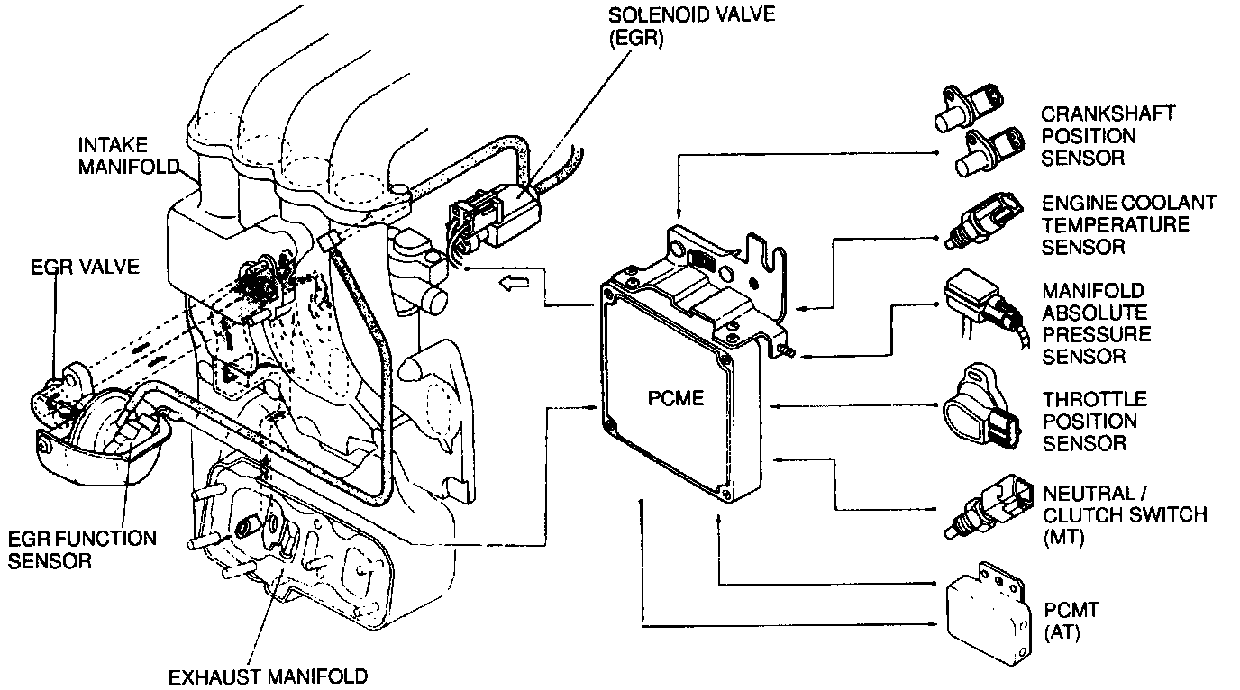 This system consists of the EGR valve, EGR function sensor, solenoid valve, powertrain control module engine (PCME) and input devices.