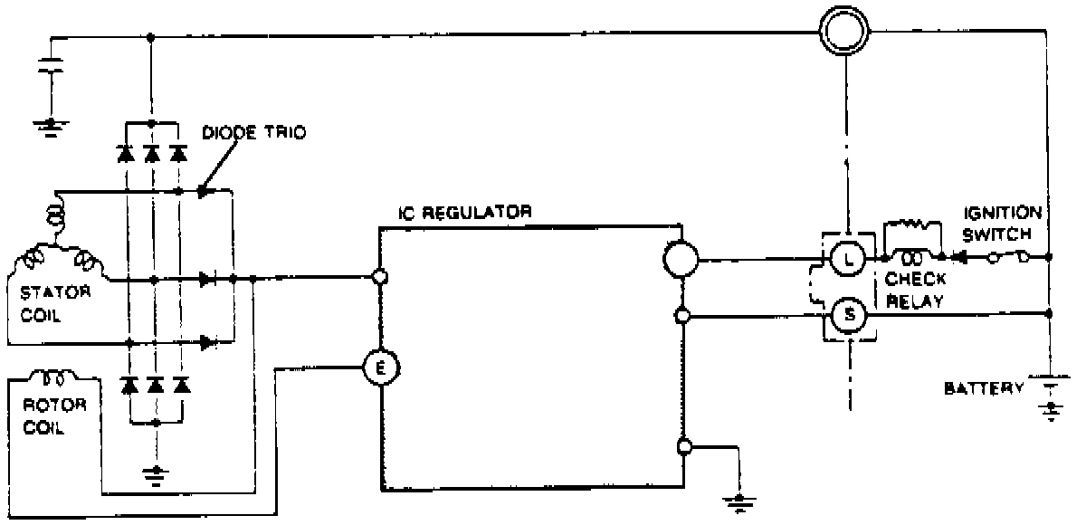 The charging systems in Fig. 1 and 2 are equipped with self-diagnostic capabilities which monitor system operation and alert vehicle operator to malfunctions. Any problems sensed in system operation will be indicated by illumination of the alternator warning lamp.