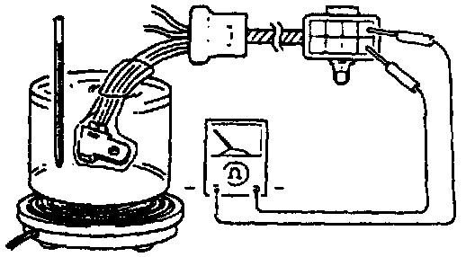 2. Wrap the ATF thermosensor and place it in water with a thermometer as shown, heat the water gradually.