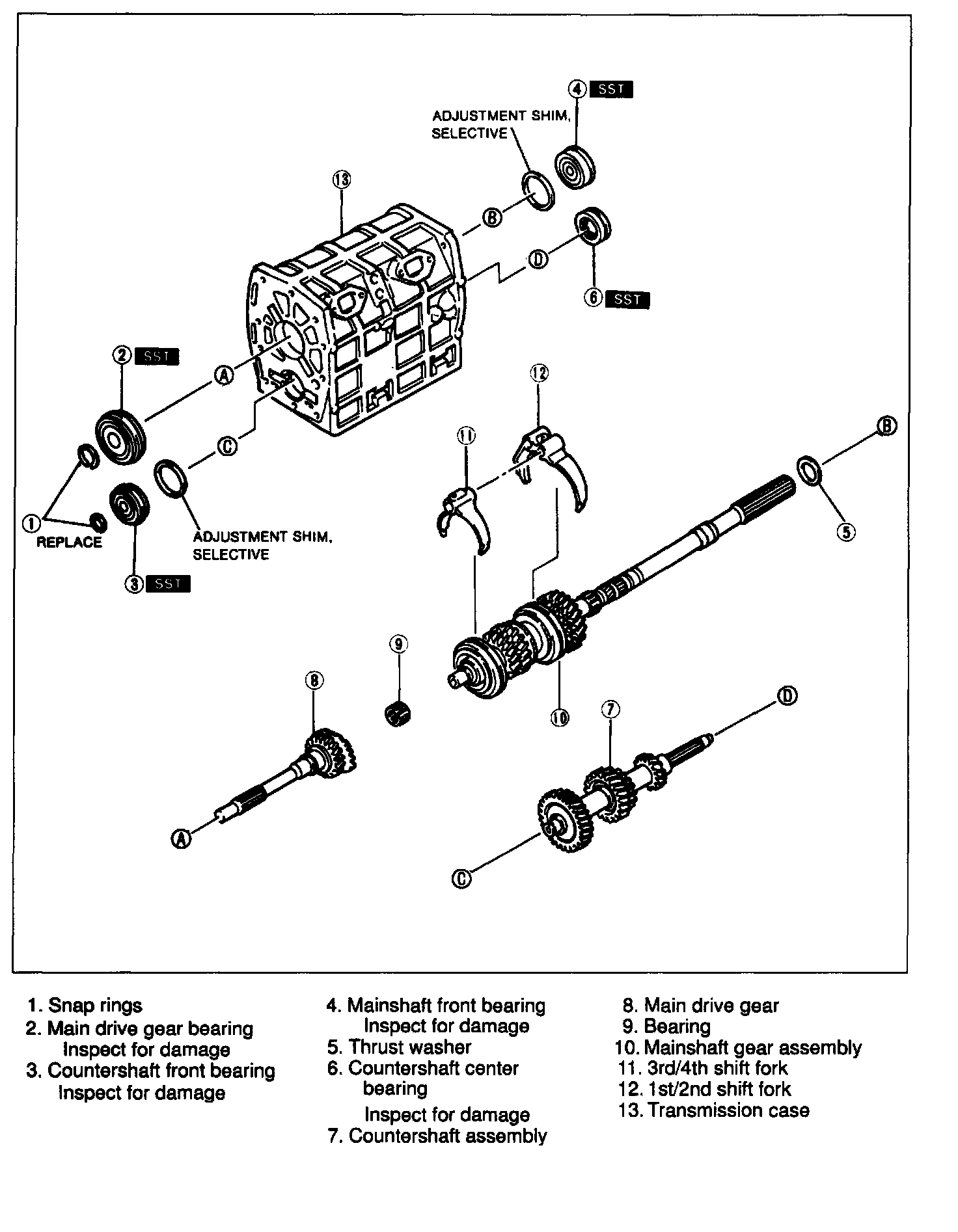 1. Install the SST between the 4th gear synchronizer ring and main drive synchromesh gear.