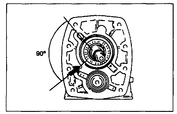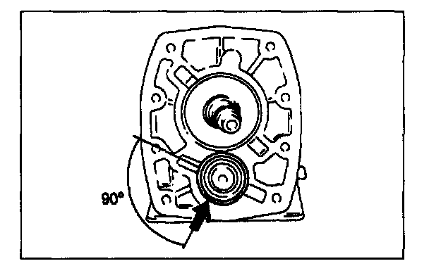 1. Turn the bearing snap rings so that the ends are 90° to the transmission case grooves.