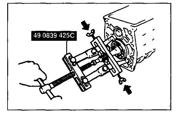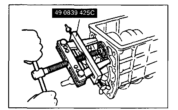 1. Remove the countershaft center bearing by using the SST.