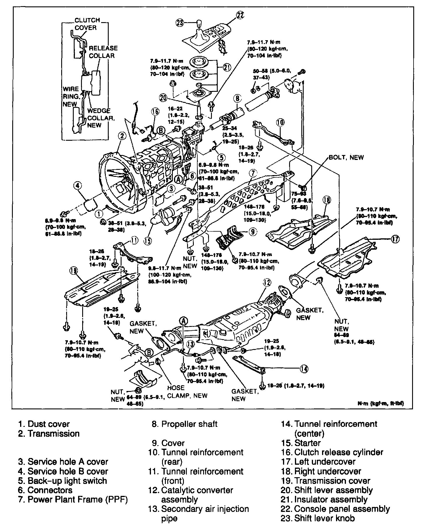 B: 75 - 93 N-m (7.6 - 9.5 kgf-m, 55 - 68 ft-lbf)