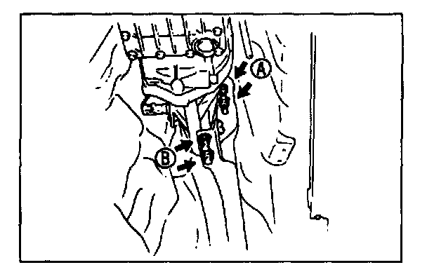5. Through service hole A, push the release-cylinder end of the clutch release fork toward the transmission, and connect the clutch release collar to the clutch cover. The clutch release collar should snap into the clutch cover when installed properly.