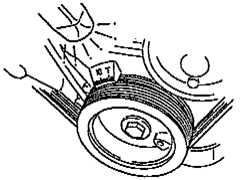 11. Verify that the timing mark (yellow) on the crankshaft pulley and the mark on the timing belt cover are aligned.