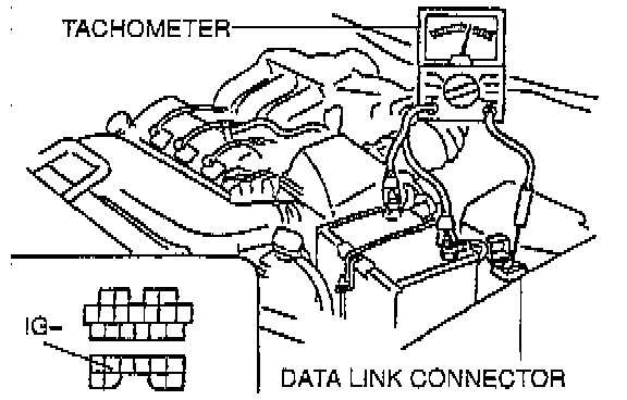 3. Connect a tachometer to the data link connector terminal IG- as shown.