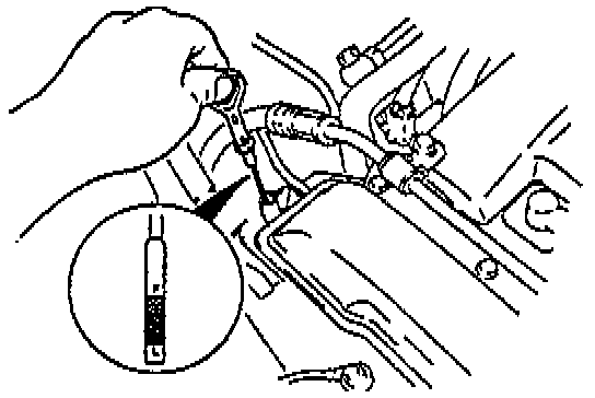 1. Remove the engine oil dipstick and check the engine oil level and oil-condition.