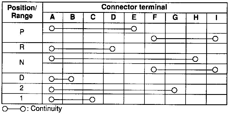 4. Check continuity of the transaxle range switch.