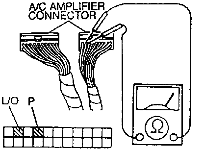 2. Measure resistance between terminal wires (P) and (L/O) of the connector, and measure the temperature around the ACS (Passenger Compartment Temperature)