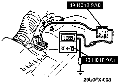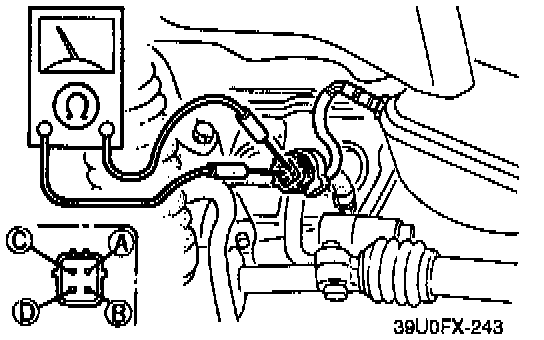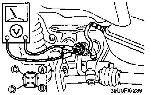 3. Connect a voltmeter between the heated oxygen sensor terminal A and B.