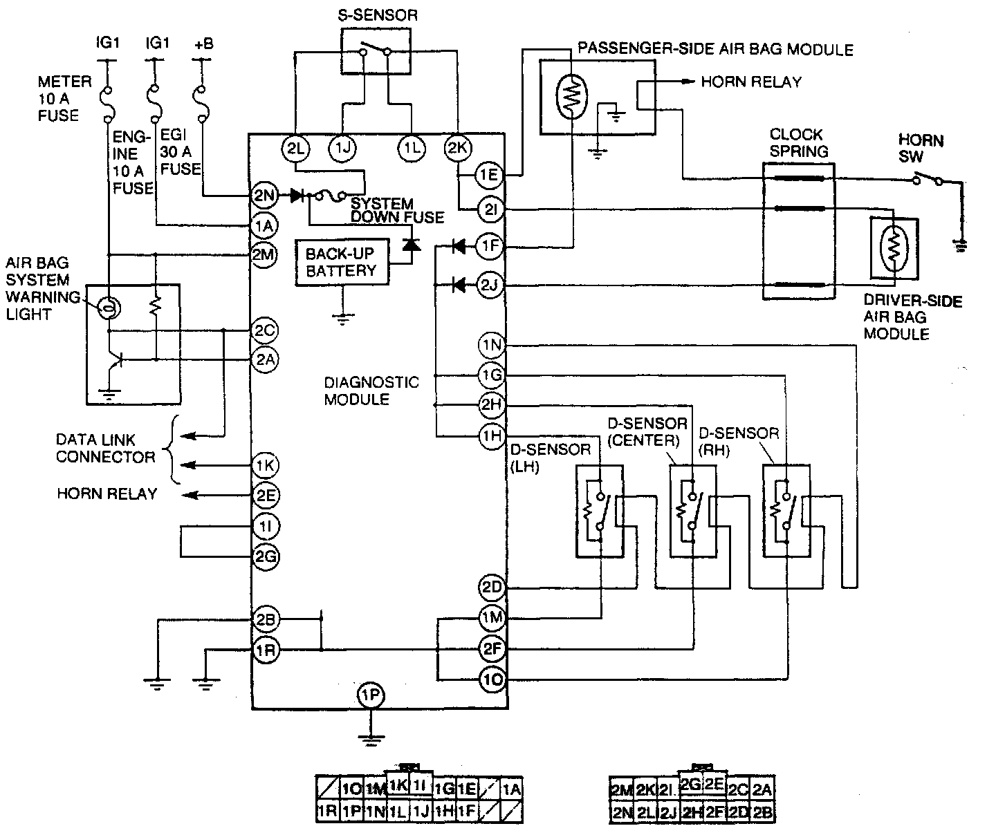 - In the case of a short circuit in the sensors or sensor harnesses, the diagnostic module activates the warning light and shuts down the system to prevent accidental deployment of the air bags.