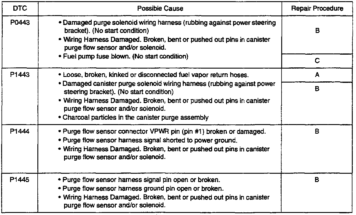 Some vehicles may have the MIL (Malfunction Indicator Lamp) illuminate and possibly a no start condition. This concern may also have the following DTC's stored in memory; P0443, P1443, P1444, P1445.