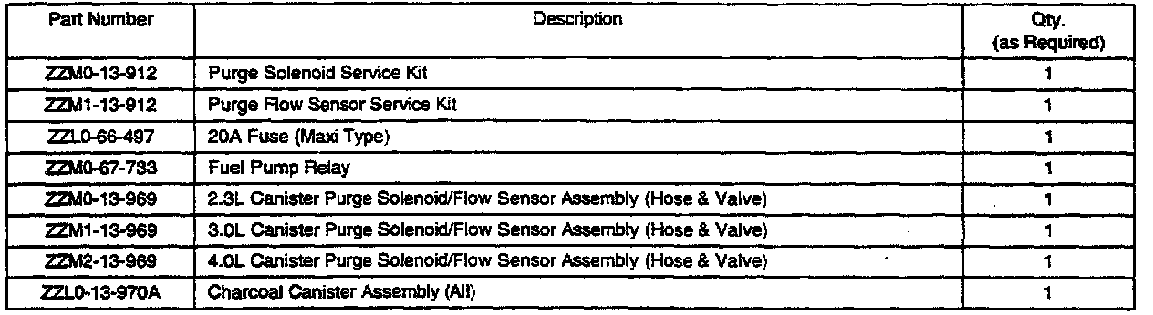 Use the Purge Solenoid Service Kit and/or the Purge Flow Sensor Service Kit and each enclosed instruction sheet. DO NOT attempt to repair or replace the terminals without the service kit If either the canister purge solenoid or purge flow sensor requires replacement, all components (hose, purge valve, flow sensor) must be replaced as an assembly. Refer to the Parts Information below.