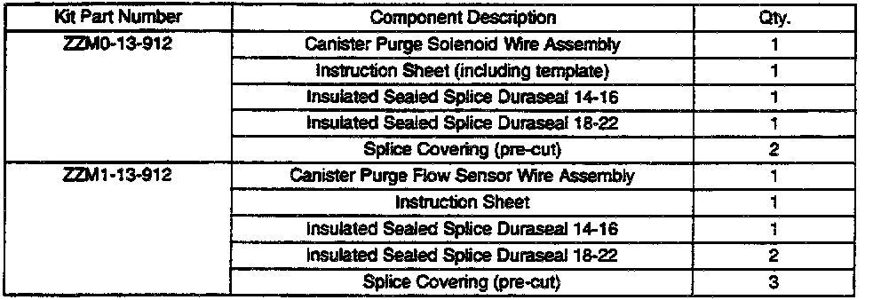 Use the Purge Solenoid Service Kit and it's enclosed instruction sheet to splice the wiring pigtails. DO NOT attempt to repair or replace the wire without the service kit.
