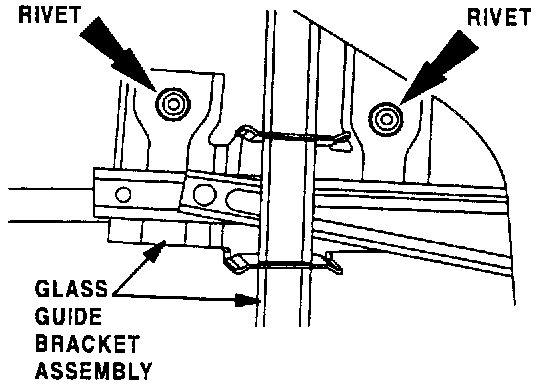 10. Fasten the window to the glass guide bracket using two new rivets.