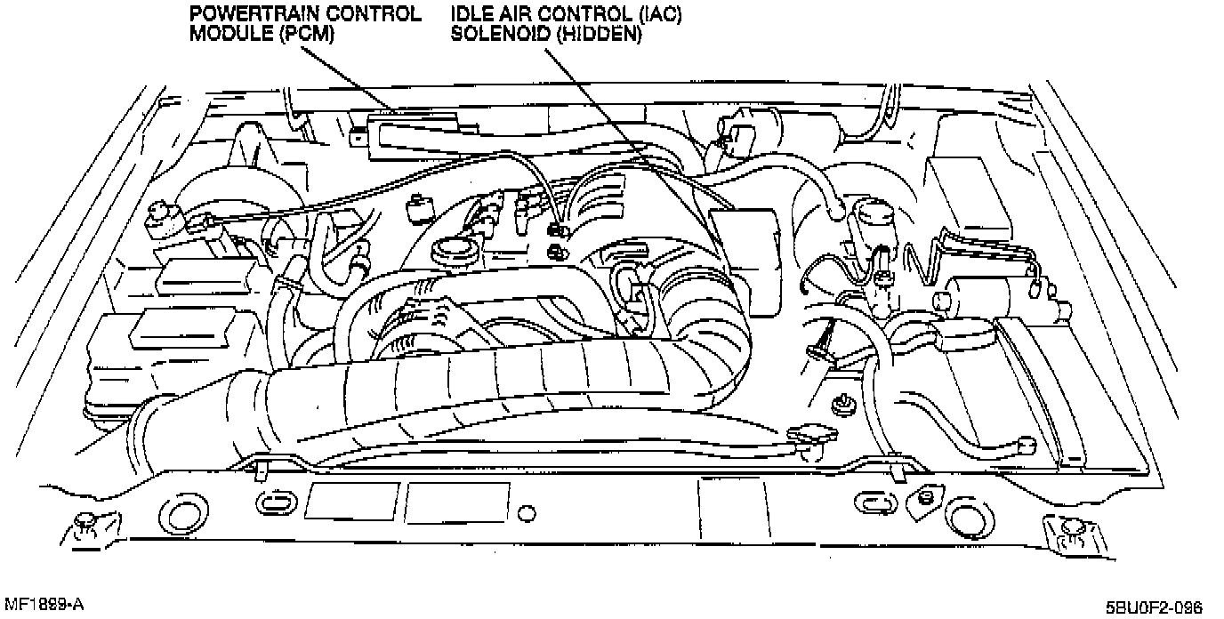 The idle-speed control system controls the bypass air amount that passes through the throttle body to improve idle stability warm-up and driveability. This system consists of the idle air control solenoid, powertrain control module (PCM) and input devices.