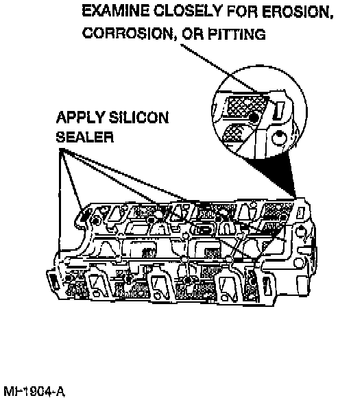 3. Apply the appropriate sealant to the intersection of the cylinder block and cylinder head at the four corners as in step 1.