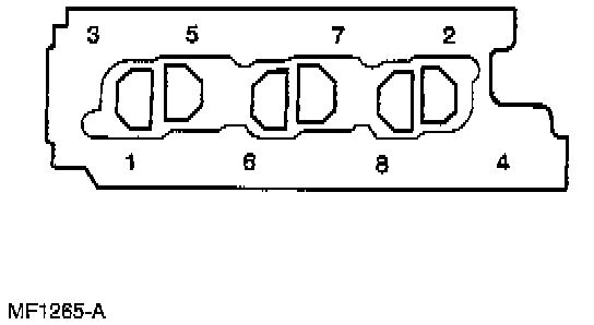 4. Position the intake manifold with the aid of two guide studs located in position 3 and 4, and install the bolts hand-tight. Then remove the two guide studs and replace with bolts.