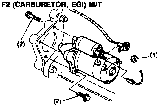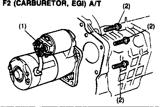 4. Remove starter motor bolts and starter motor from vehicle. On some models equipped with automatic transmissions, remove starter motor bracket, bolts and starter motor from vehicle.
