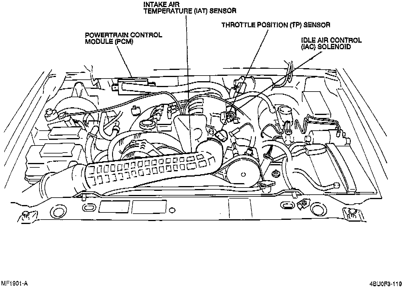 The idle-speed control system controls the bypass air amount that passes through the throttle body to improve idle stability warm-up and driveability. This system consists of the idle air control solenoid, powertrain control module (PCM) and input devices.