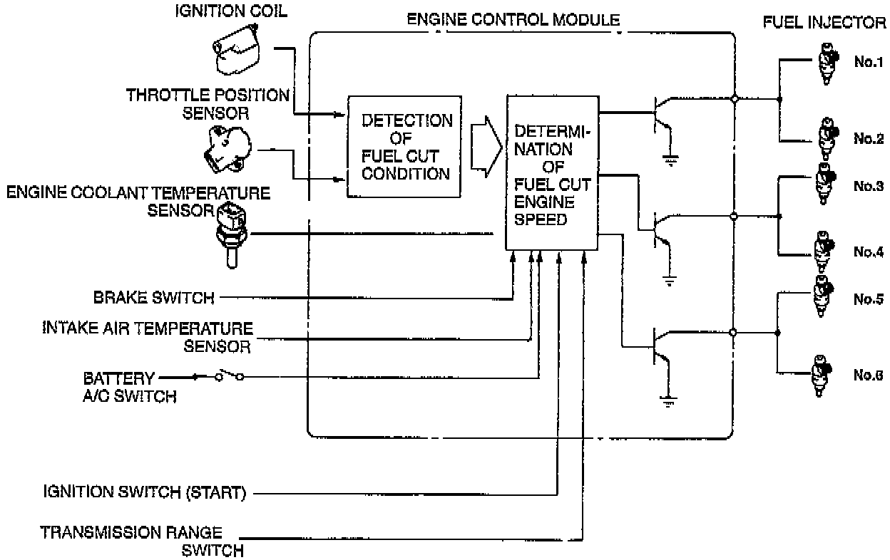 The deceleration control system consists of the fuel cut operation and dashpot.