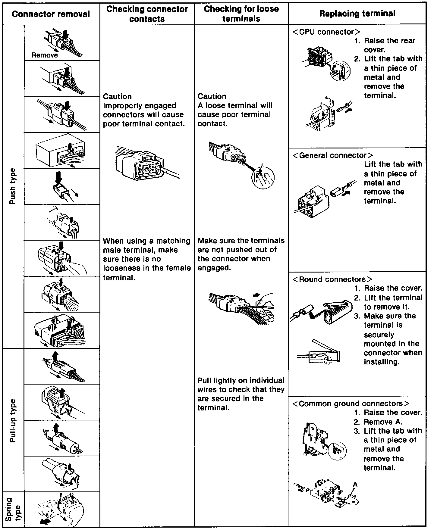 Be sure to grasp the connector, not the wires, when disconnecting them.