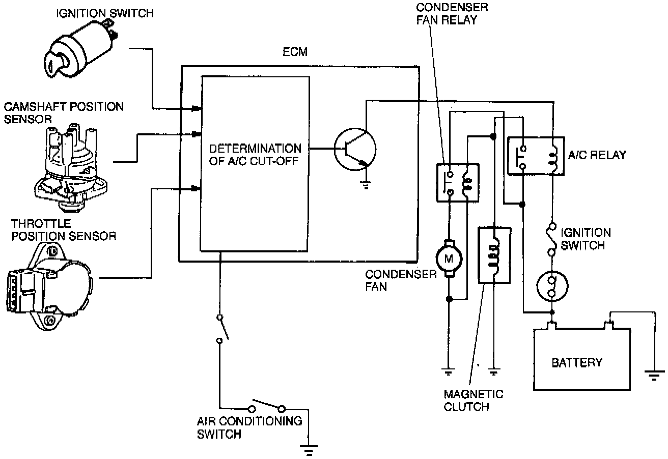 An A/C cut-off system is used to improve idle smoothness after just starting the engine and to improve acceleration performance.
