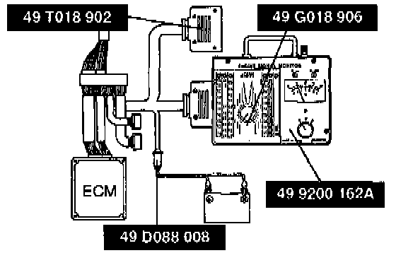 1. Connect the special service tools (SST)s to the engine control module (ECM) as shown in image.