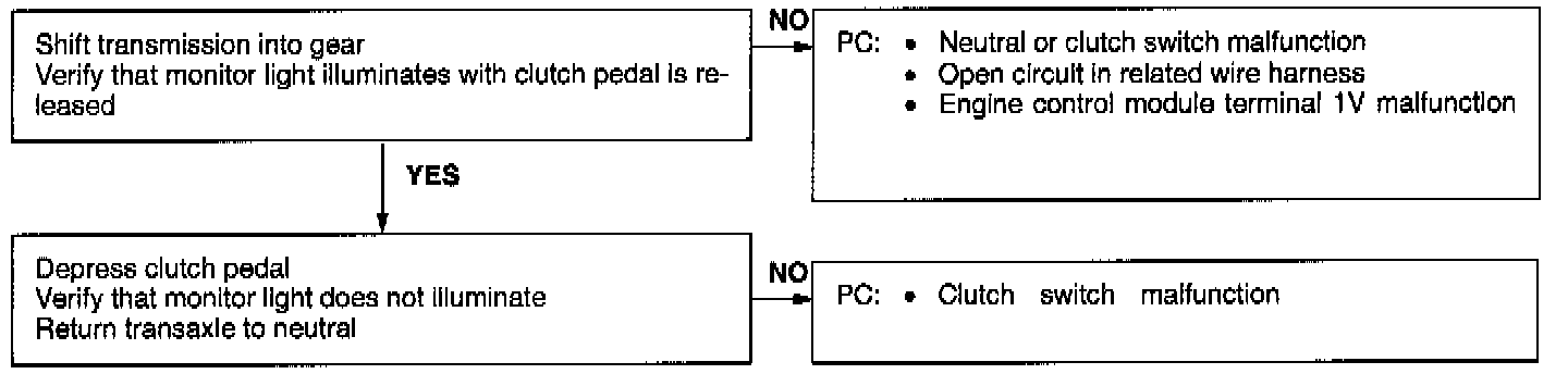If the monitor lamp fails to illuminate or fails to turn OFF for any given switch under the conditions in Fig.1, then the switch and related circuit should be tested further.