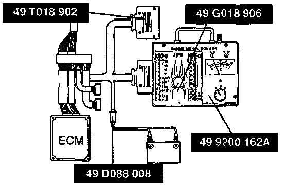 2. Connect the special service tools (SST)s to the ECM connector as shown.