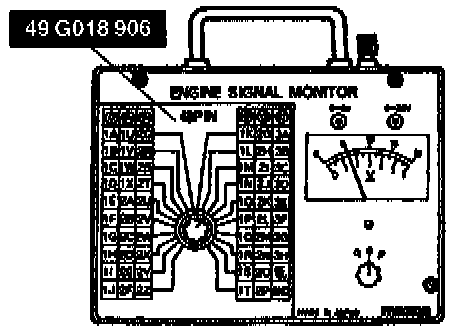 2. Connect the special service tool (SST) (Engine Signal Monitor) between the engine control module (ECM) and the wiring harness using the SST (Adapter) as shown.