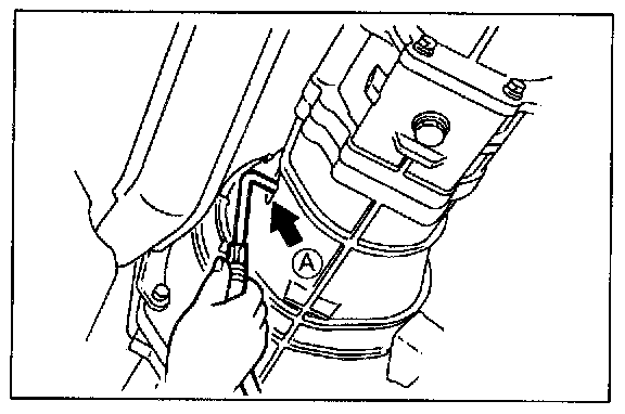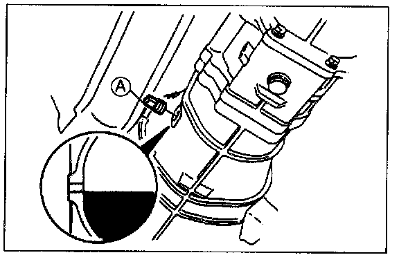 5. Add the specified oil at check plug (A) port until the level reaches the bottom of check plug hole.