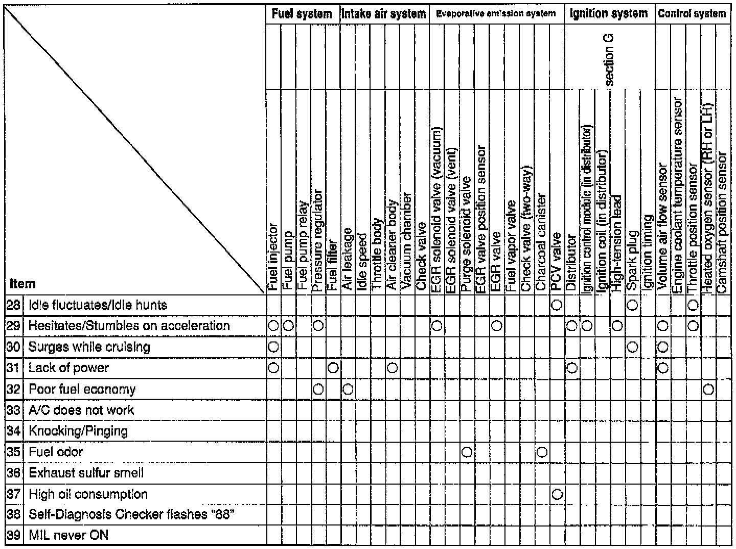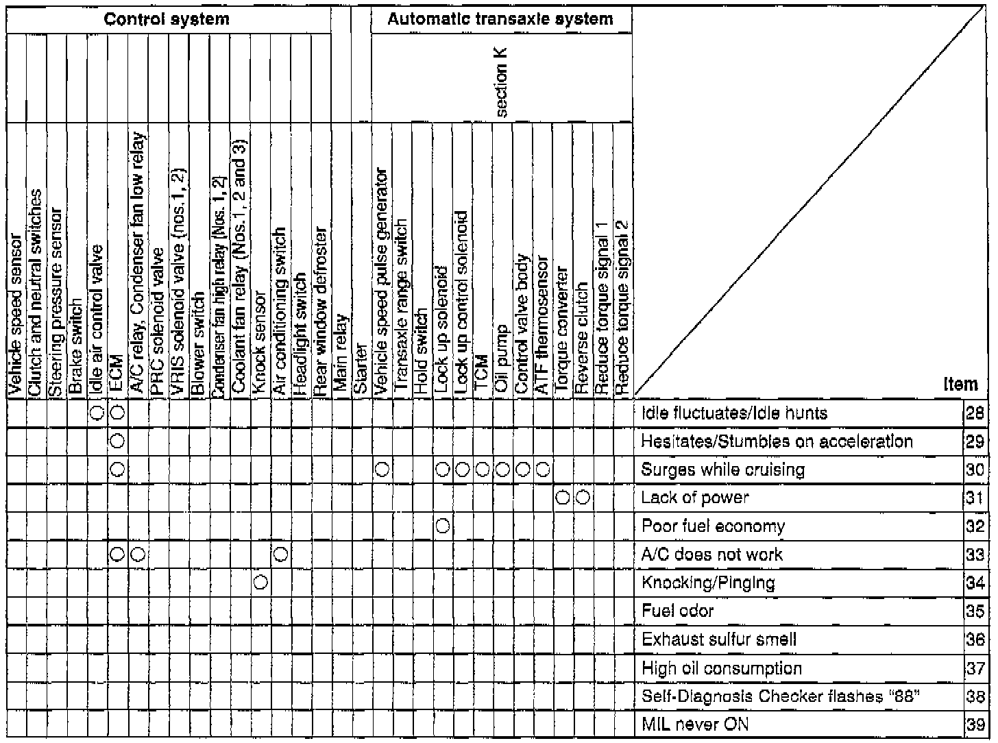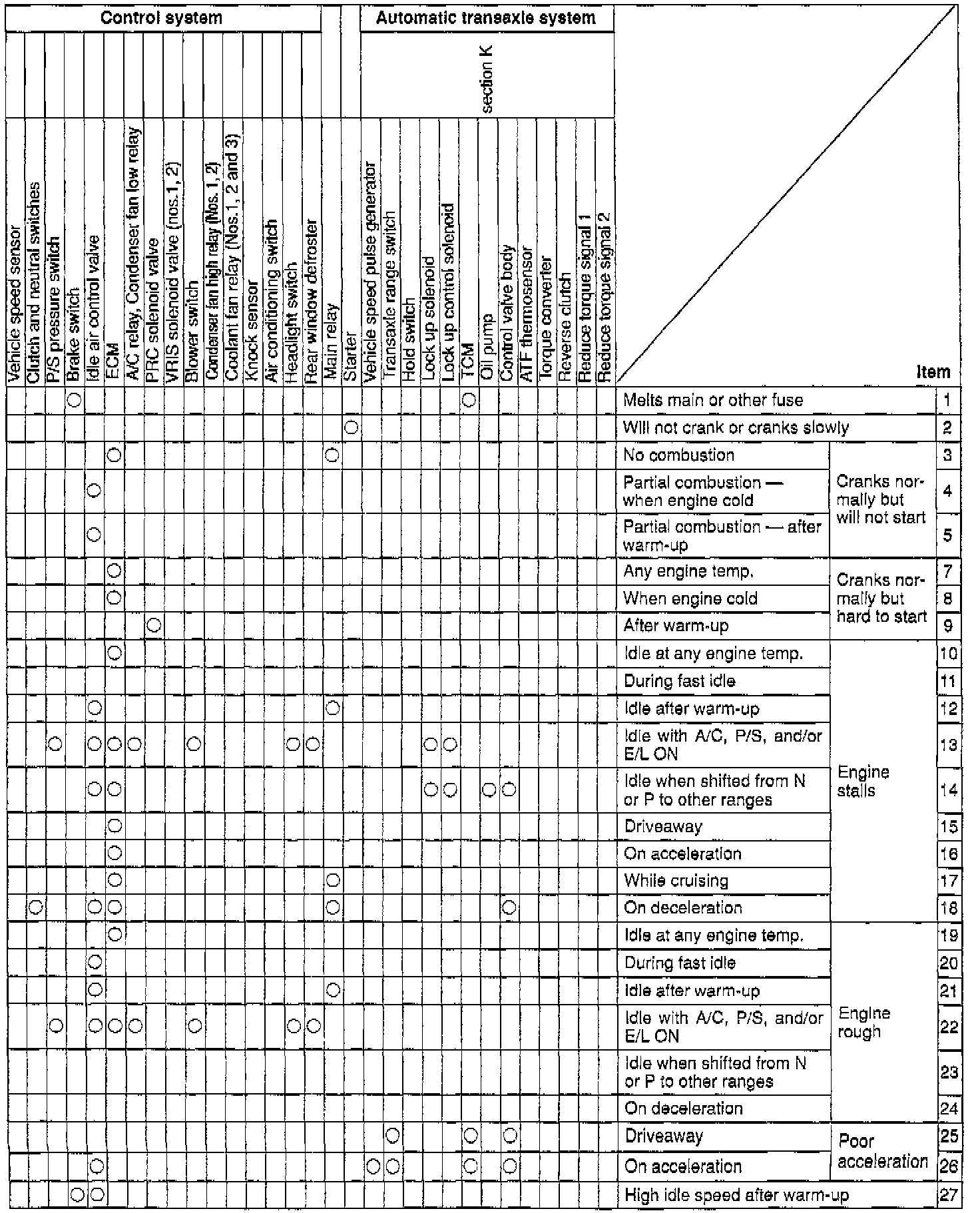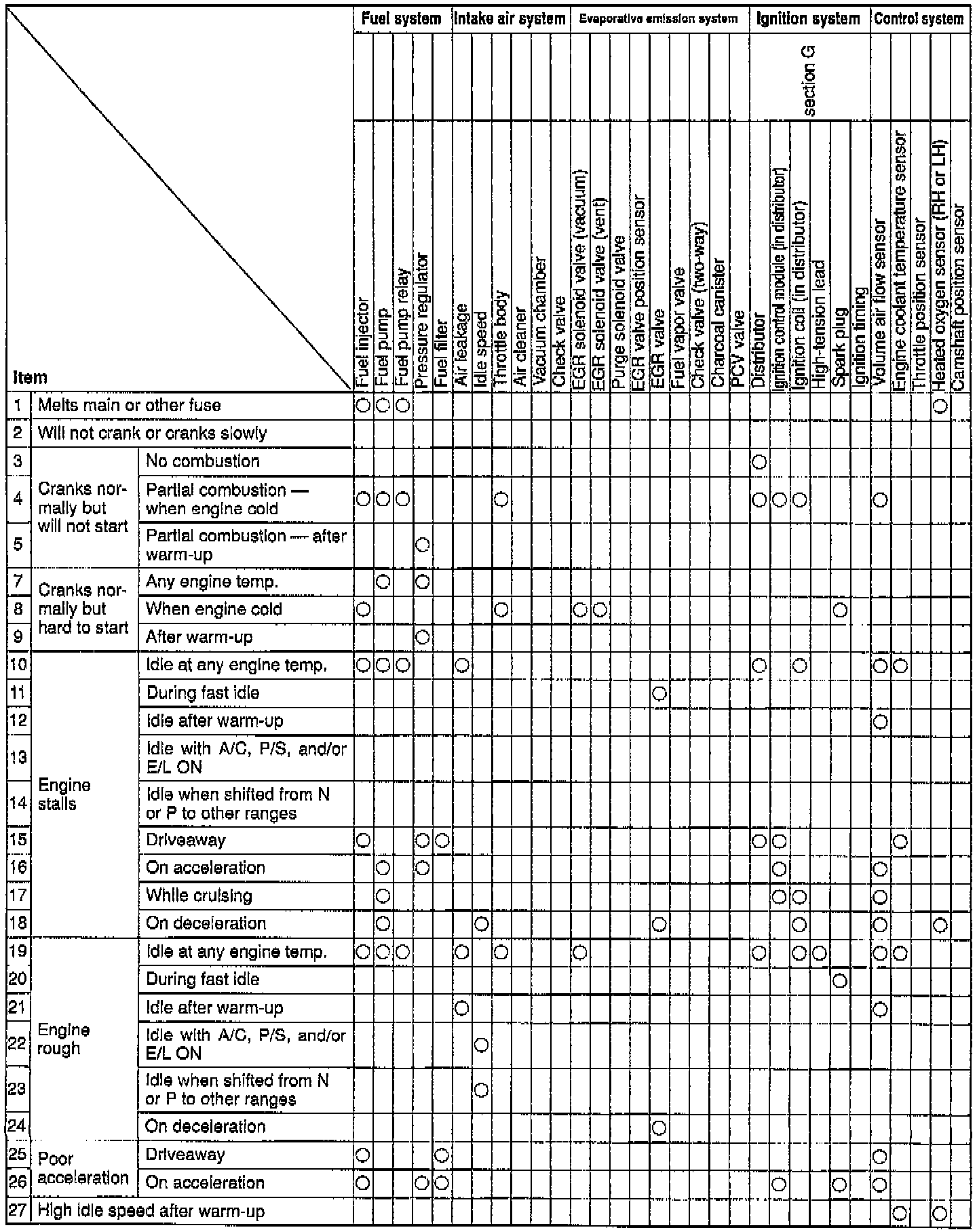 These Quick Diagnosis Charts show the relationship between troubleshooting items and inspection points.