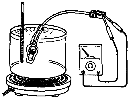 2. Place the transaxle fluid temperature sensor in ATF with a thermosensor as shown and heat the ATF gradually.
