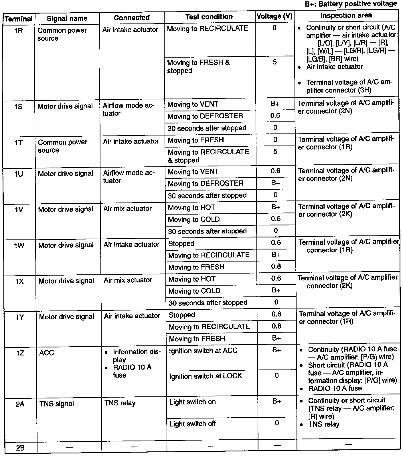 6. If the appropriate area is correct, replace the A/C amplifier.