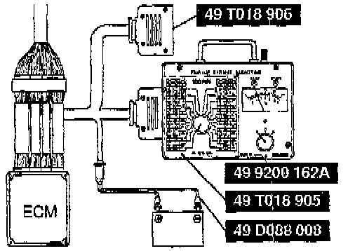 - Between ECM terminal 4D and mass air flow sensor terminal A