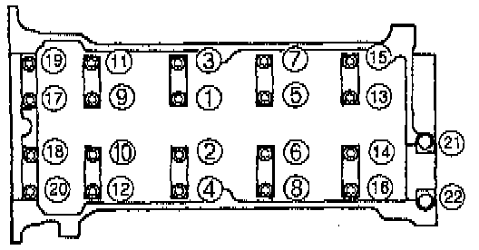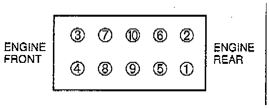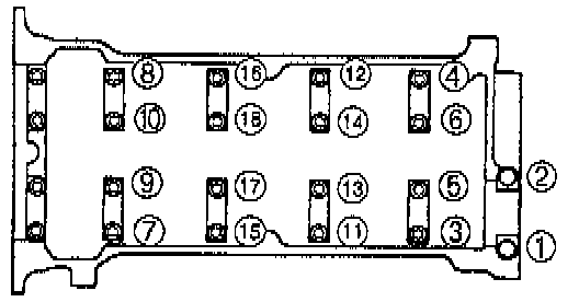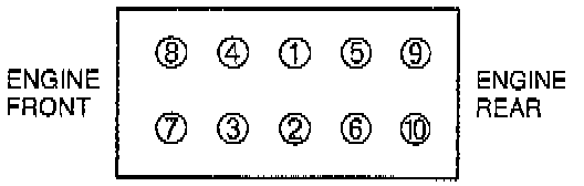 1. Loosen the cylinder head bolts in two or three steps in the order shown.
