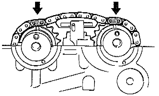 Before removing the camshaft, timing chain, and chain adjuster, inspect the following.