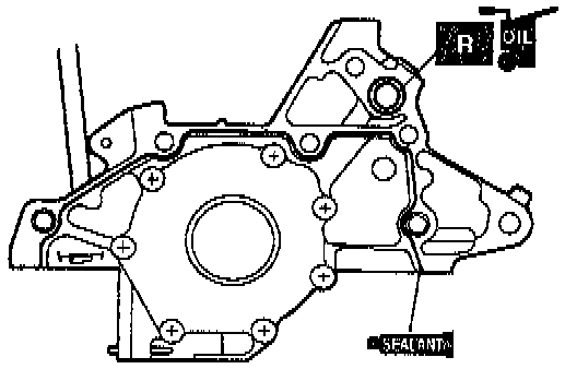 1. Apply silicone sealant to the oil pump and rear cover mounting surfaces of the new oil pan gaskets, and install them.