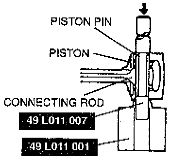 6. While inserting the piston pin, check the pressure force. If it is less than specification, replace the piston pin or the connecting rod.