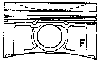 3. Insert the piston and connecting rod assembly into the cylinder with the F mark facing the front of the engine.