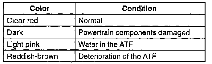 ^ Light pink and/or reddish-brown condition: Replace ATF.