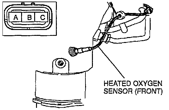 3. Measure the voltage at heated oxygen sensor [Front] connector terminal A by using a voltmeter.