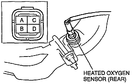 4. Ground heated oxygen sensor [Rear] connector terminal B to body.