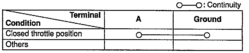 2. Check for continuity between the closed throttle position switch terminal and a ground by using an ohmmeter.