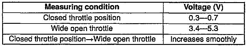 2. Measure the resistance between throttle position sensor connector terminals A and C by using an ohmmeter.