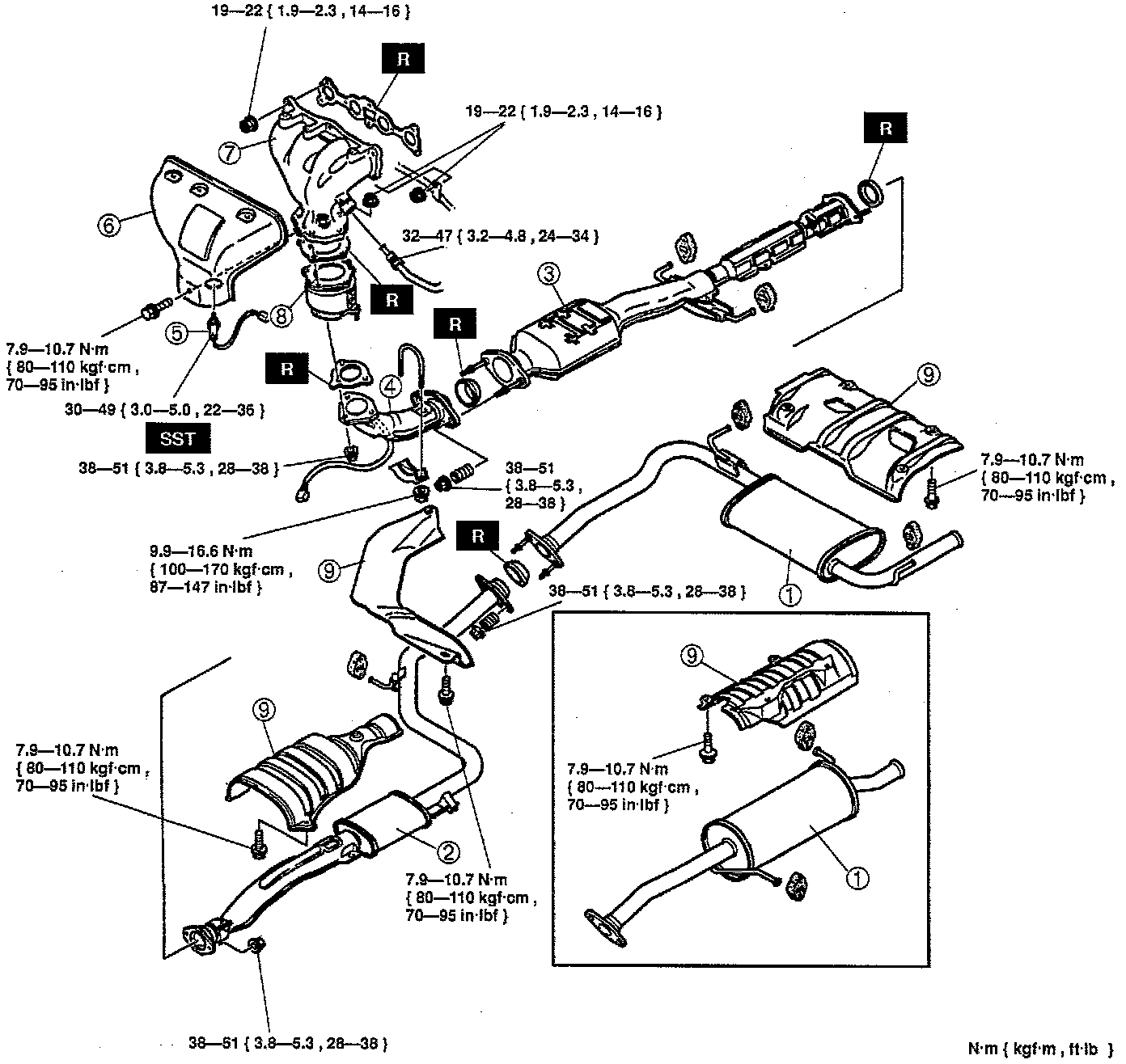 Tightening torque: 38-51 N-m (28-38 ft-lb)
