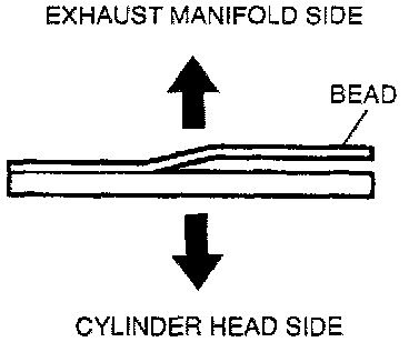 Face the bead of the gasket toward the exhaust manifold as shown, and install the exhaust manifold.