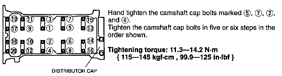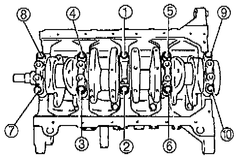 2. Tighten the cylinder head bolts in two or three steps in the order shown.